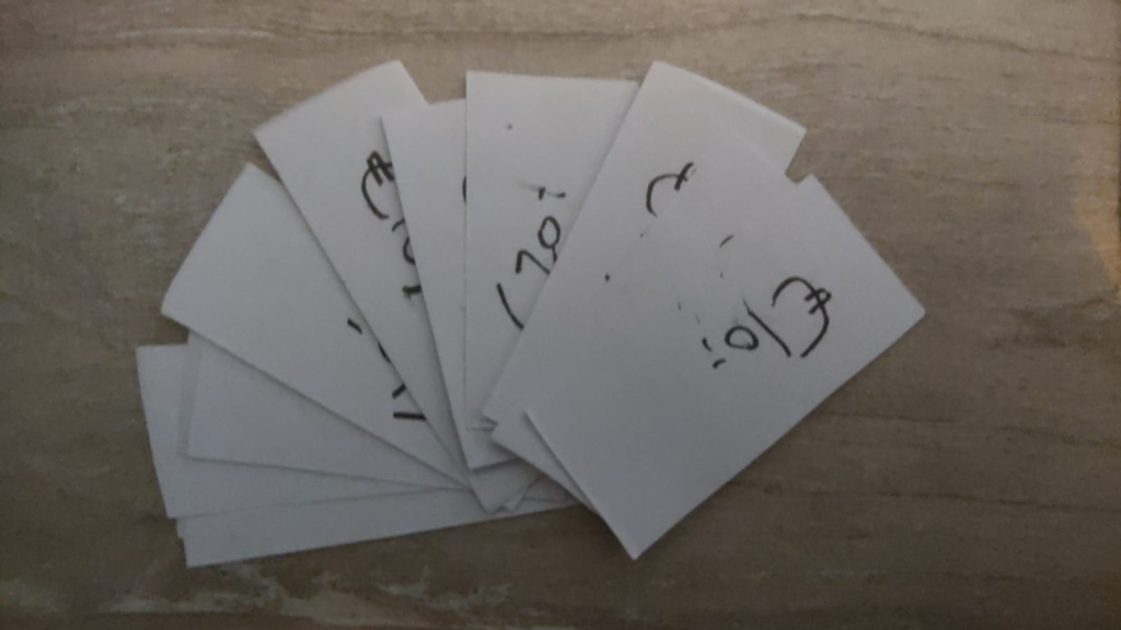 With this prototype I wanted to test if the datasets I put on the cards were shocking enough for my audience. I then proceeded to test it with a usability test. I gave the participants a short explanation of the game and let them play it out. This test was conducted twice, the first time with three students and the other one with 4 teenagers. In insights I gained from this: