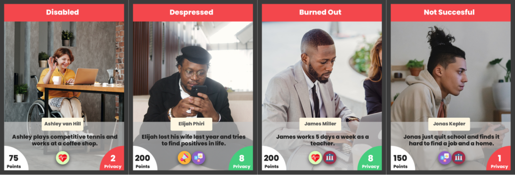 All data cards in this game are based on real data sets that people are profiled in. These data sets can be bought right now and many companies use them to exploit their audience.